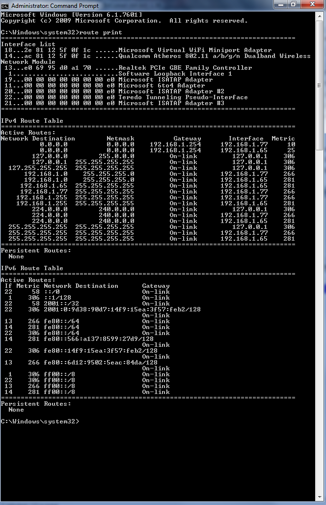 I forgot to ask if you could also run the command route print and post the output of that as well.