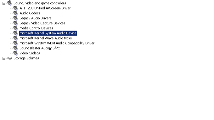 I don't know what dev 0008 means or how you interpret it, but i think this is important.  When i first put this tower together i did install a new Audigy Fx (4)  sb1570.  afterwards when it didn't work i called creative and they told me it was the wrong board for my system and to but the Audigy Rx (5)  sb1550.  Thisis the hardware i currently have installed in my tower.  I thought i uninstalled all the previous files for the Audigy Fx but not sure since the windows remove programs wouldn't do it for me and creative didn't have an uninstall file for this purpose, there maybe still an undesireable file left over from the first installation.  BTW, my os is win xp pro 64bit sp2.  So now since you've determined that the dxdiag has reported this Audigy Fx (file/driver?)  is it possible for me to remove it and set things straight?