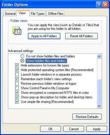 3. On the View tab, under Hidden files and folders, click Show hidden files and folders.